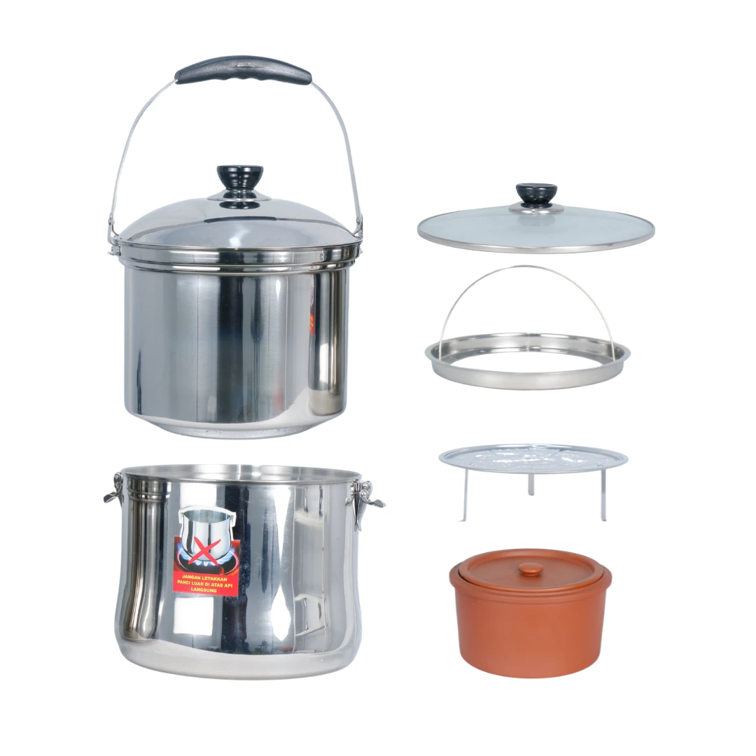 - Menggunakan teknologi 3 ply stainless steel bahan paling aman untuk memasak
